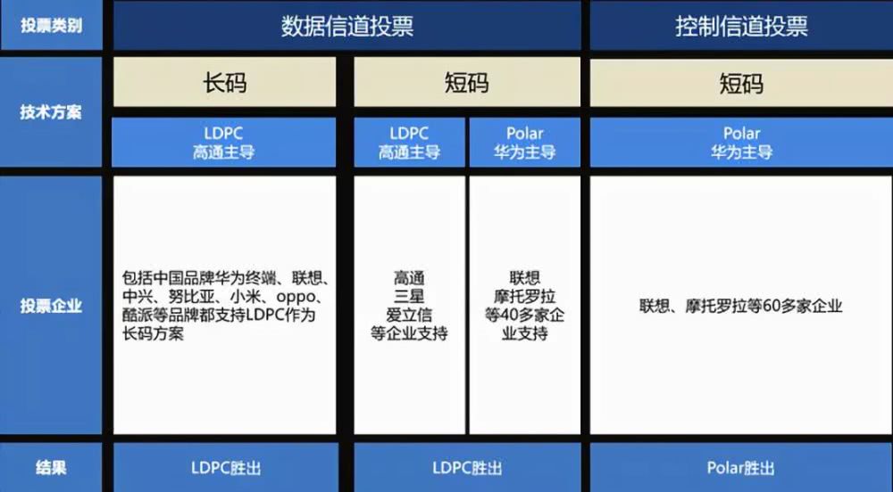 在2016年11月华为主推的极化码(Polar Code)方案战胜高通的LDPC等一众方案被国际无线标准化组织(3GPP)确定为5G增强移动宽带场景控制信道的短码编码方案,该方案可以同时满足物联网和互联网时代需求的超高速率、低延时及大连接等优点,成为5G标准的重要角色,也表明了中国在5G移动通讯的全球布局中有了自己的话语权。