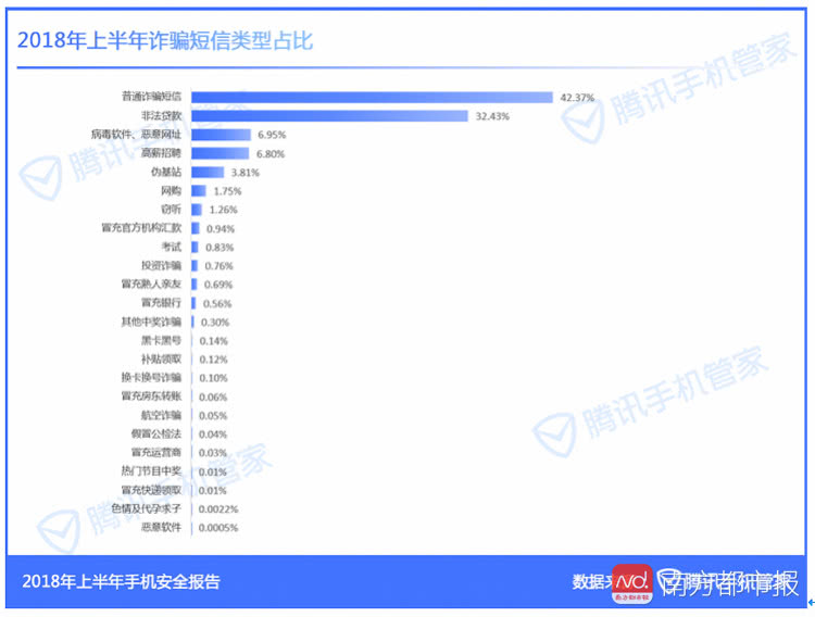 垃圾短信8.89亿条,骚扰电话1.43亿次,这是2018年上半年,用户在腾讯手机管家的举报量,其中垃圾短信以广告类为主,诈骗电话占比20.8%。